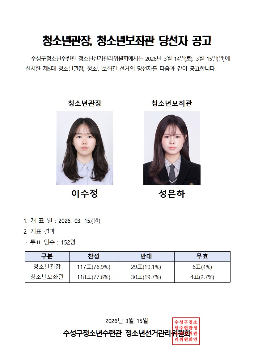 2026³â Á¦5´ë û¼Ò³â°üÀå&û¼Ò³âº¸Á°ü ´ç¼±ÀÚ °ø°í